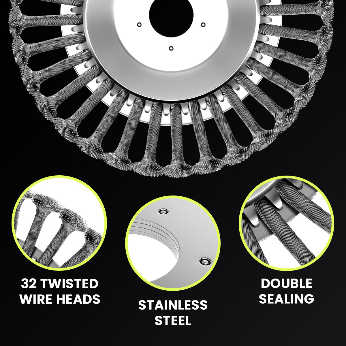This trimmer head is made of twisted steel wires with 36 brush blades. It is specially designed for both simple quick and easy jobs, or for tough jobs that need turbo power injection. No job is too big or too difficult for this product.